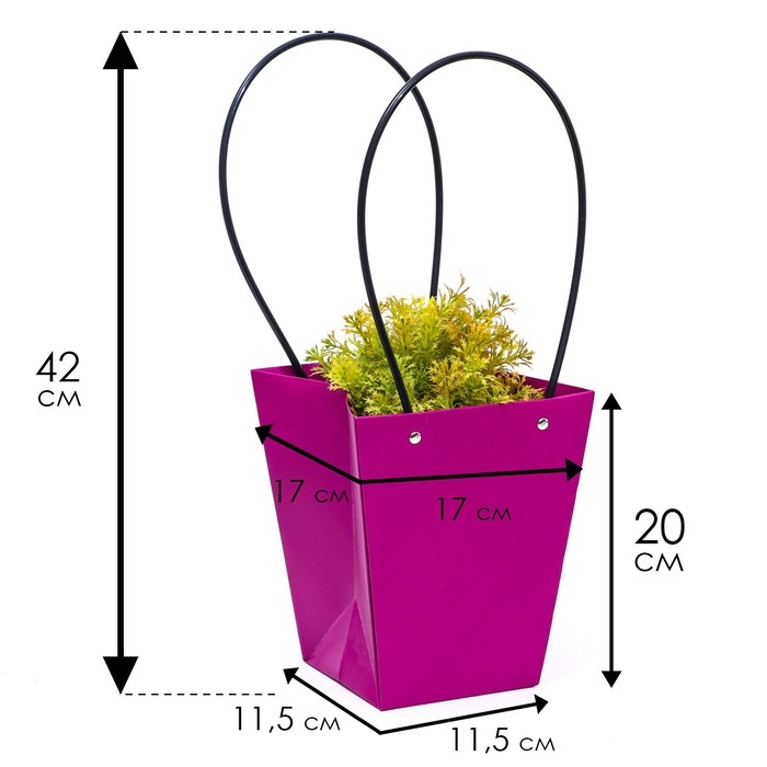 Сумка для цветов «Фуксия», влагостойкая, 17 x 17 - 11,5 x 11,5 - 20 см