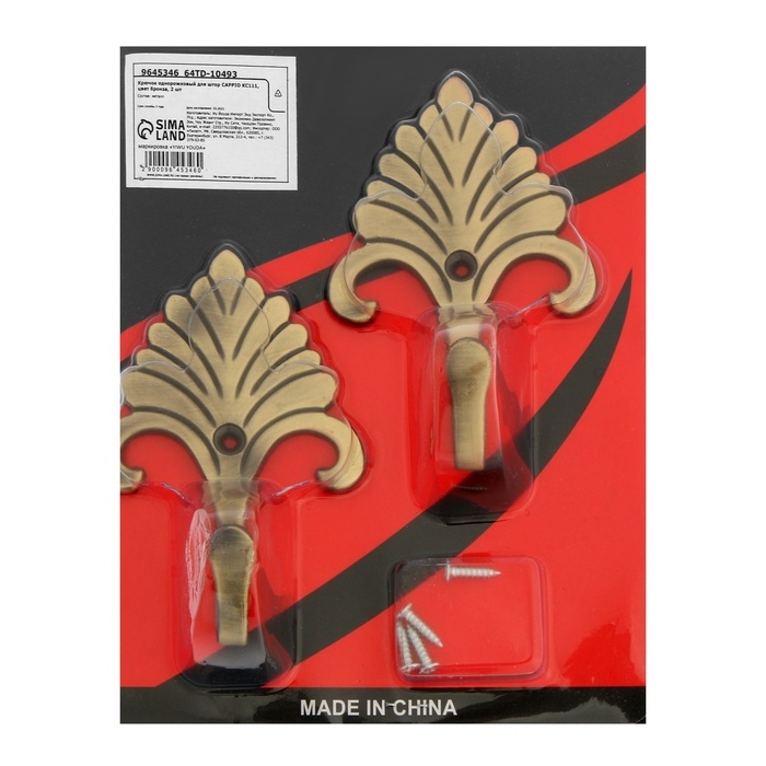 Крючок однорожковый для штор CAPPIO KC111, цвет бронза, 2 шт