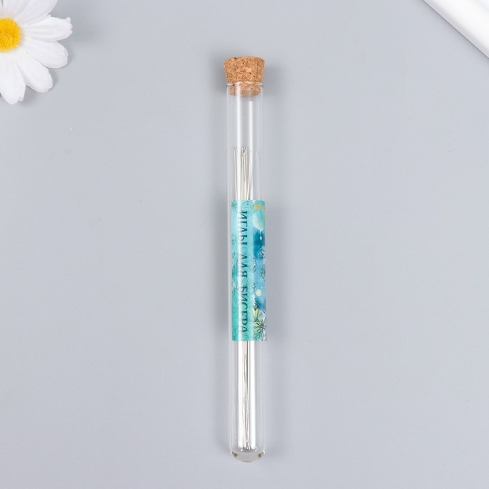Иглы металл для бисера в стеклянной колбе тонкие набор 10 шт Ø 0,45х120 мм 1,5х1,5х14 см