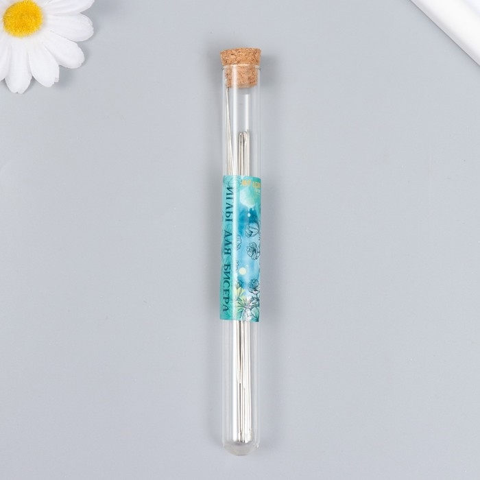 Иглы металл для бисера в стеклянной колбе тонкие набор 10 штØ 0,7х120 мм 1,5х1,5х14 см