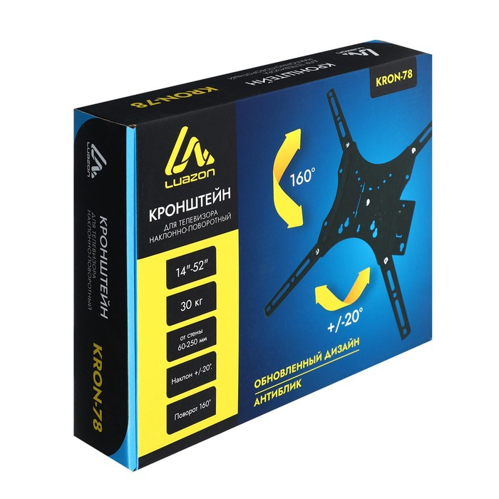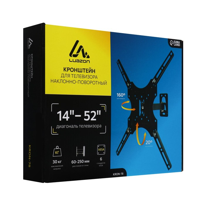 Кронштейн Luazon KrON-78, для ТВ, наклонно-поворотный, 14-52", 60-250 мм от стены, чёрный