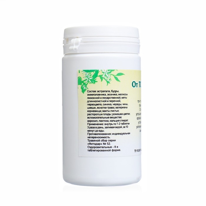 Астрагала, будры, змееголовника, зюзника, мелиссы лимонной и лекарственной, мяты длиннолистной и перечной, первоцвета, синяка, череды, чины, шикши, яснотки трава; валерианы корневища, вахты листья; расторопши плоды; ромашки цветки; вспомогательные вещества: аэросил, лактоза, кальция стеарат.