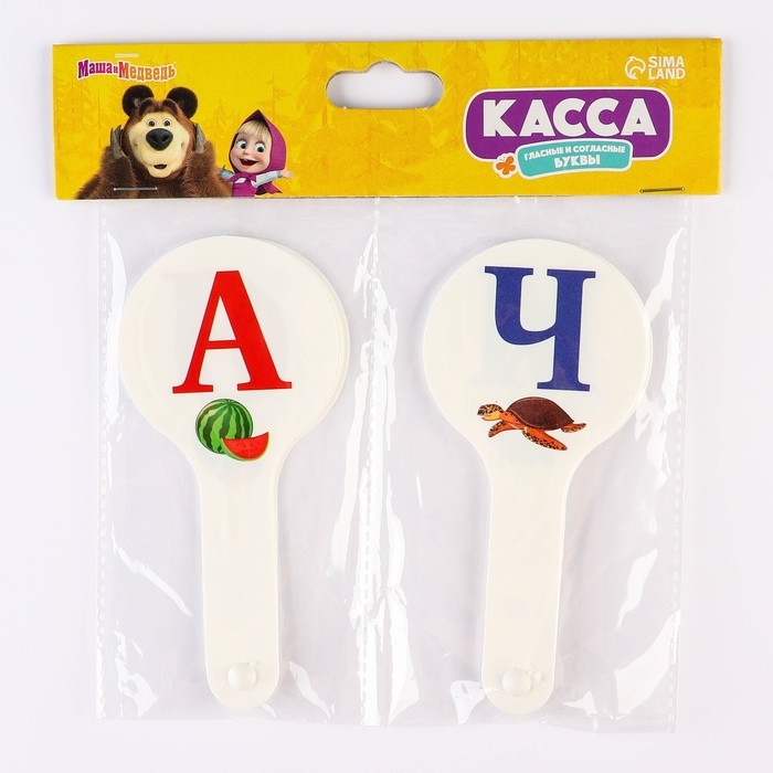 Набор веер-касс, гласные и согласные буквы "Маша и медведь", 2 штуки, гибкие, пакет с европодвесом