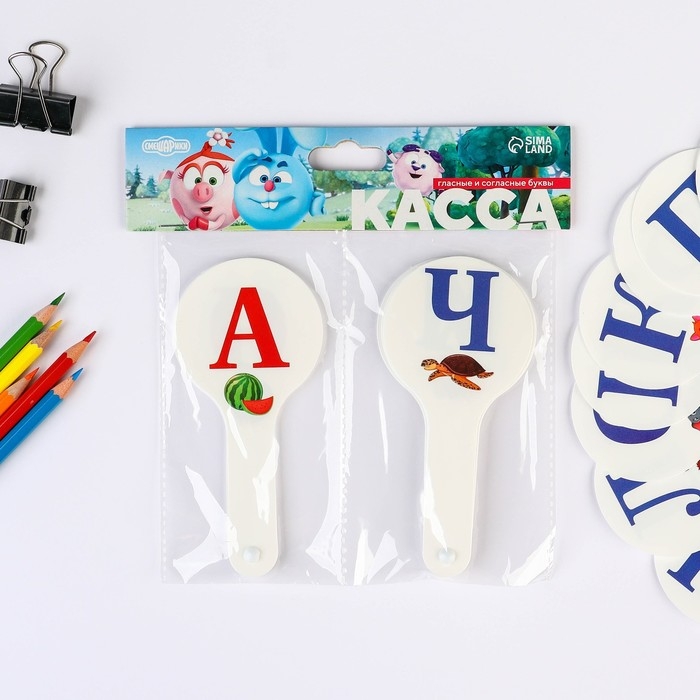 Набор веер-касс, гласные и согласные буквы "Смешарики", 2 штуки, гибкие, пакет с европодвесом