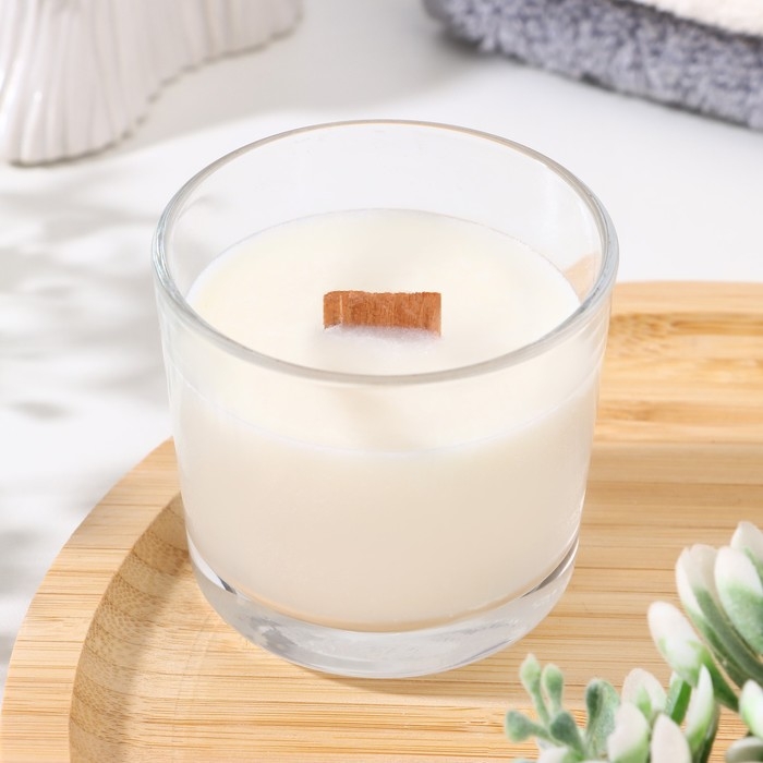 Свеча из соевого воска в стакане с деревянным фитилем "Имбирное печенье", 65 гр