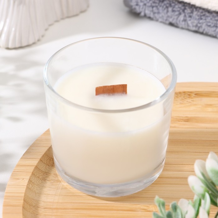 Свеча из соевого воска в стакане с деревянным фитилем "Ароматная корица", 65 гр