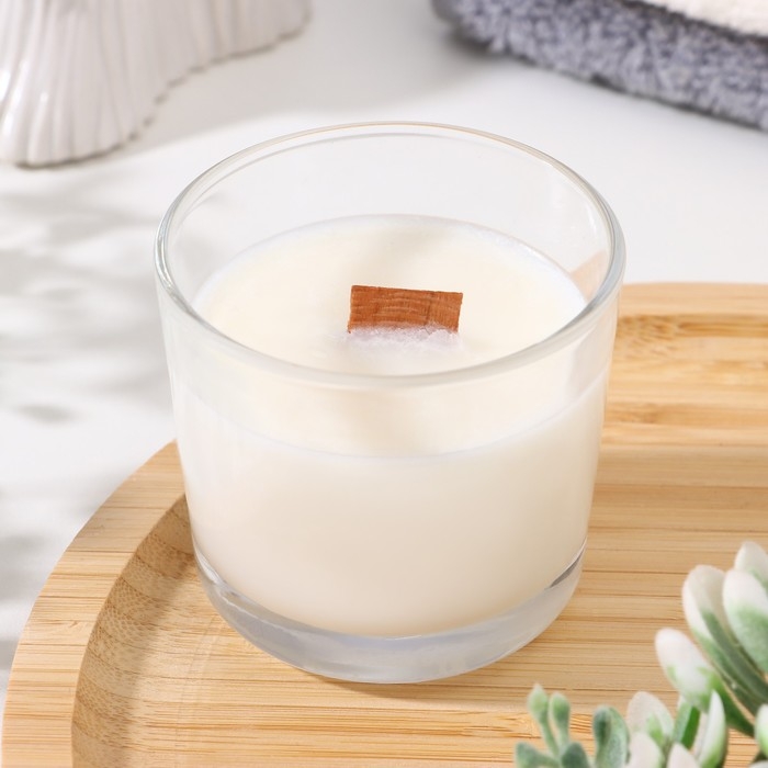 Свеча из соевого воска в стакане с деревянным фитилем "Сочное манго", 65 гр