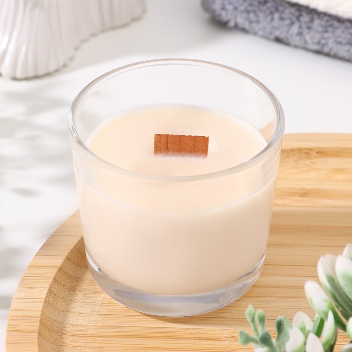 Свеча из соевого воска в стакане с деревянным фитилем "Сладкий гранат", 65 гр