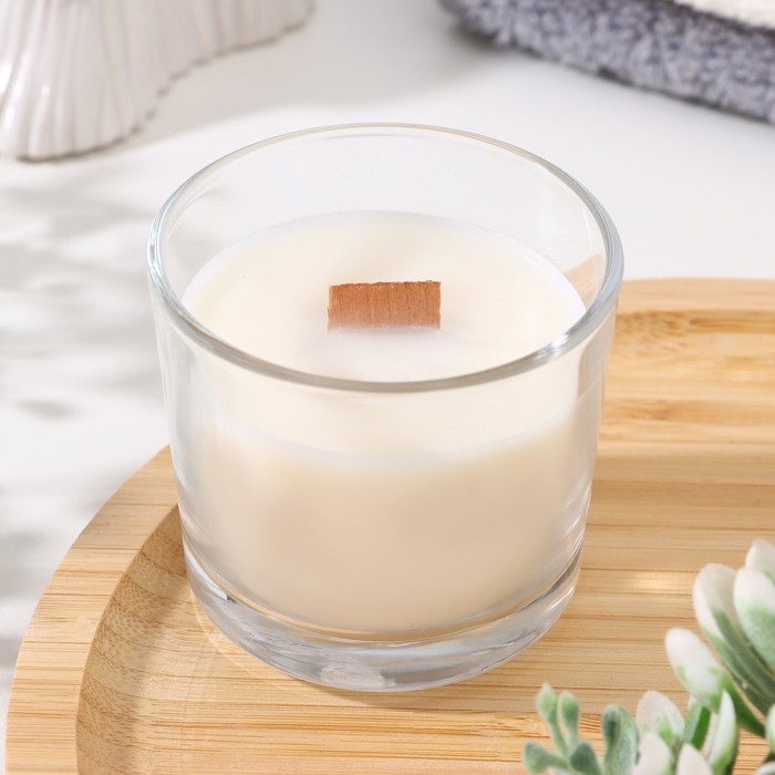 Свеча из соевого воска в стакане с деревянным фитилем "Лесная малина", 65 гр