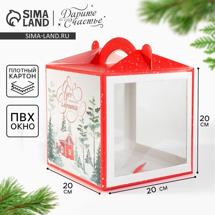 Коробка кондитерская с окном, сундук, «Чудо» 20 х 20 х 20 см, Новый год