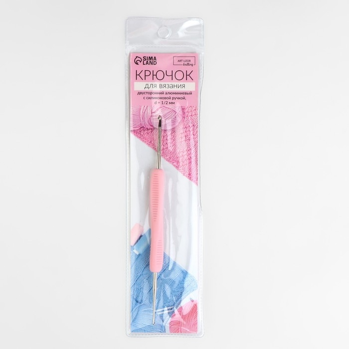 Крючок для вязания, двусторонний, d = 1/2 мм, 13,5 см, цвет розовый