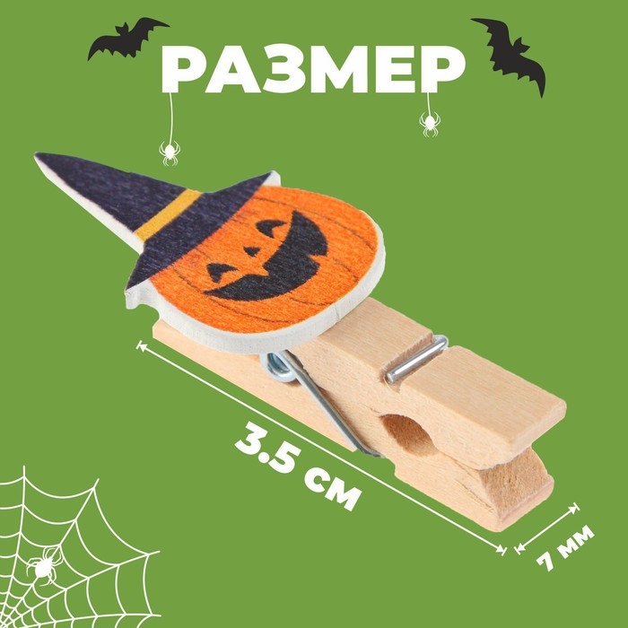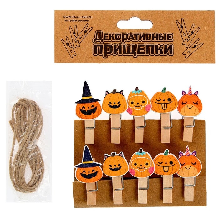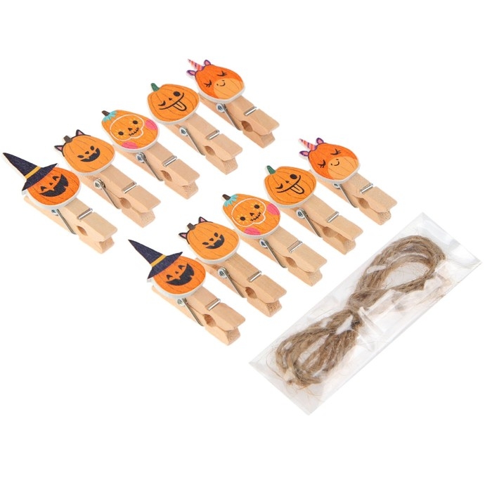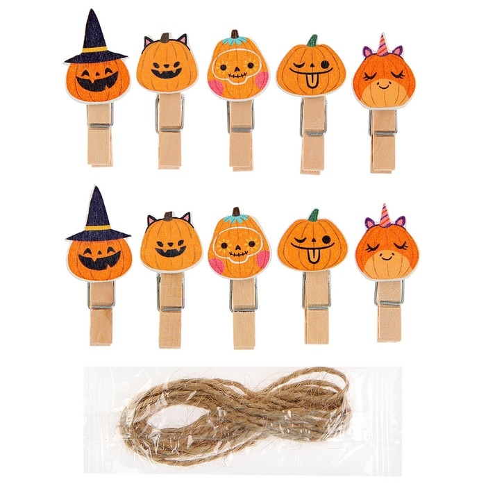 Прищепки декоративные «Тыковки на хэллоуин», набор 10 шт., с верёвкой для подвеса, 1,5 × 12 × 14 см