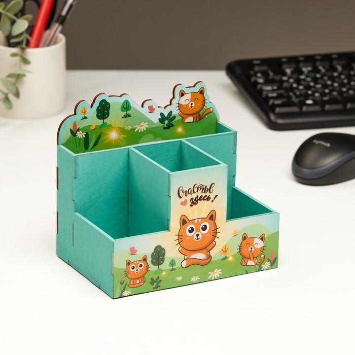 Органайзер для канцелярии "Счастье здесь!" 4 отделения 15х10х14