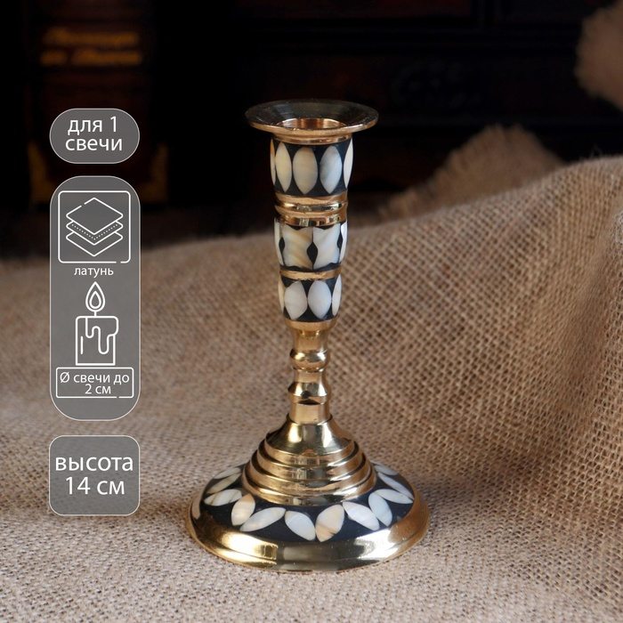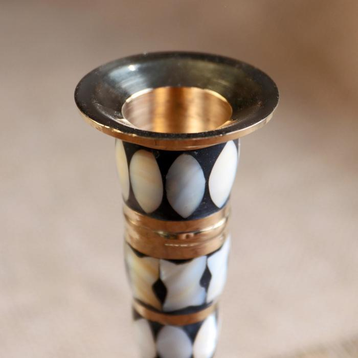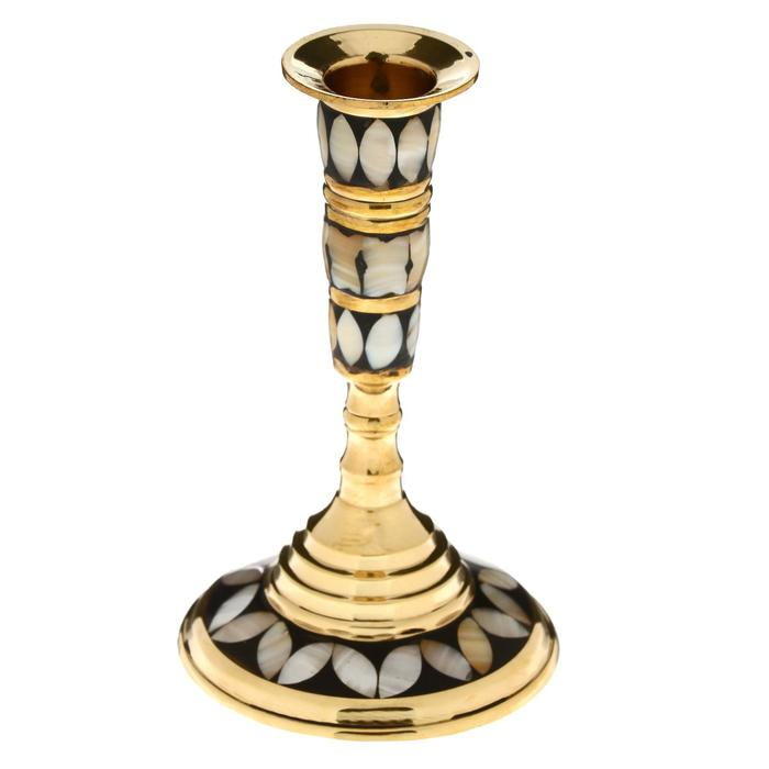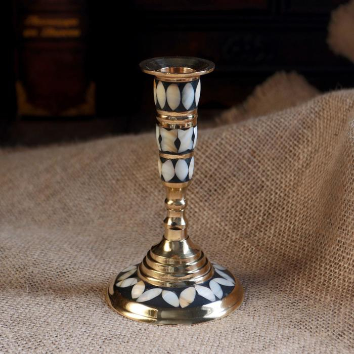 Подсвечник "Зебра" латунь, перламутр 8х8х13 см