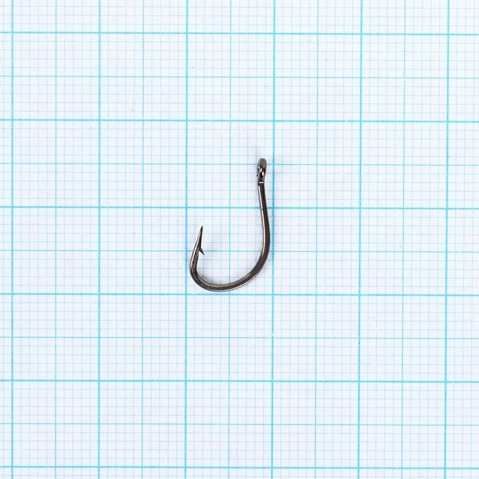 Универсальная форма крючка. Подходит под разные типы насадок. Жало отогнуто в сторону. Благодаря увеличенной бородке, позволяет уменьшить количество сходов рыбы при вываживании.