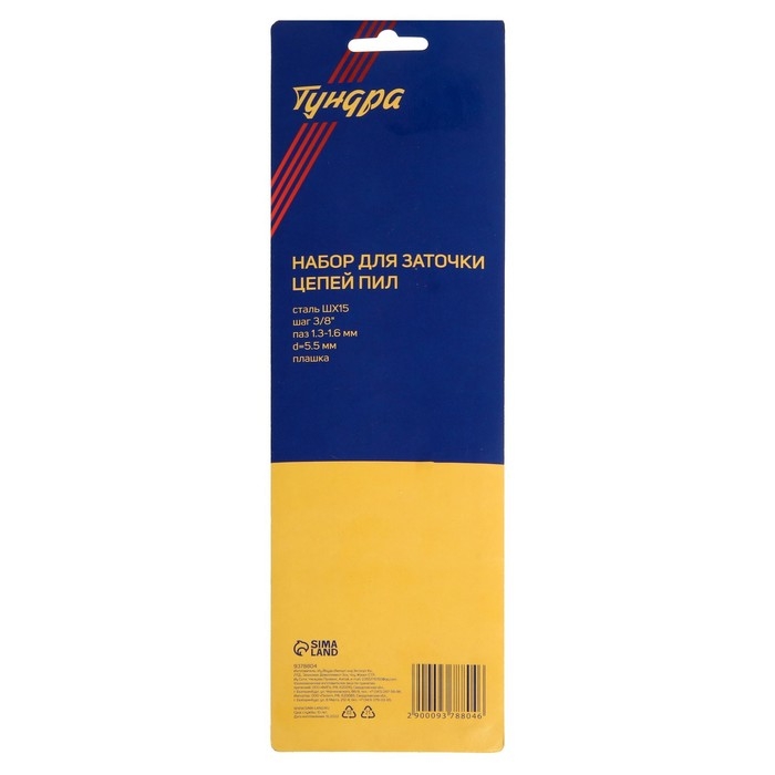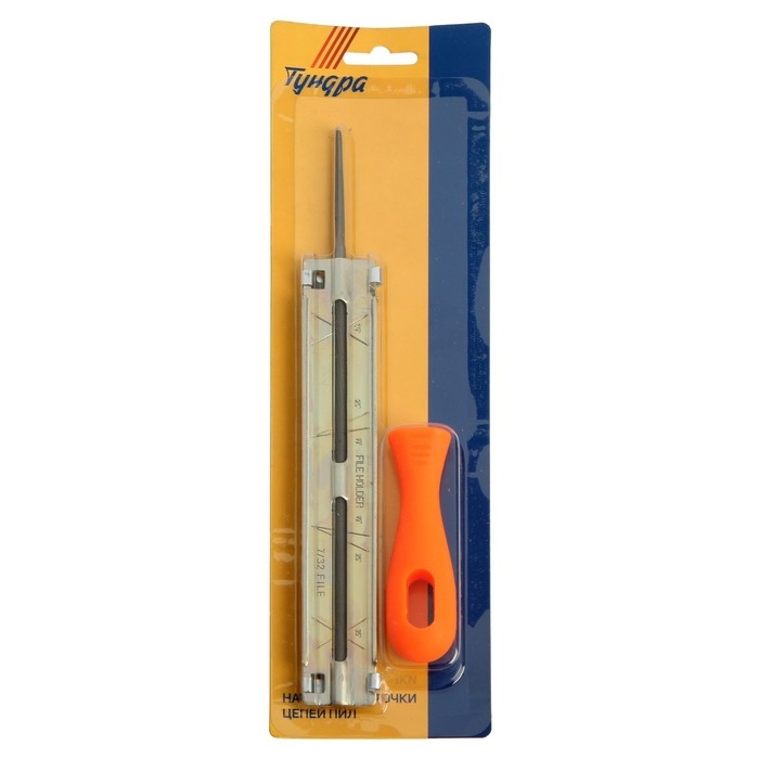 Набор для заточки цепей пил ТУНДРА, сталь ШХ15, шаг 3/8", паз 1.3-1.6 мм, d=5.5 мм, плашка