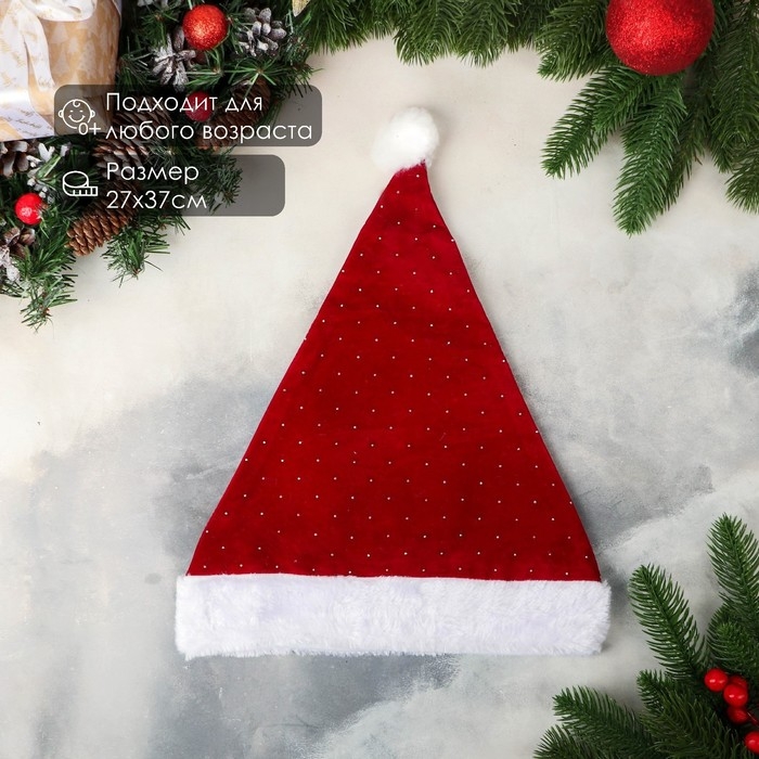 Колпак новогодний "Блеск голд" 27х37 см, красный