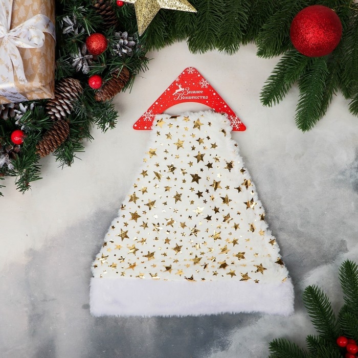 Колпак новогодний "Звёздное небо" 26х36 см, белый
