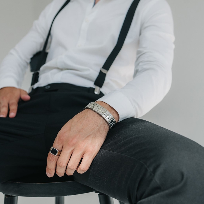 Кольцо мужское «Перстень» лабиринт, цвет золотисто-чёрный в серебре, 20 размер