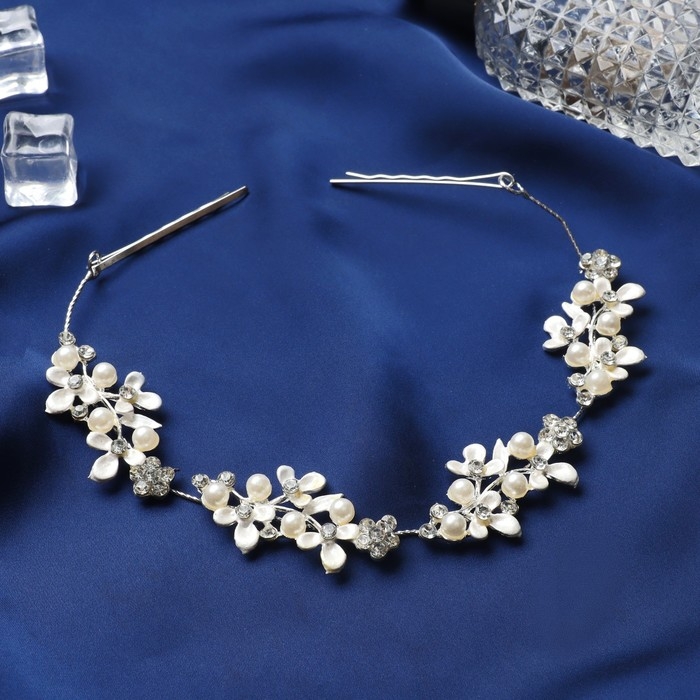 Аксессуар для волос "Гелая" (с невидимками) цветы ассорти, 23,5 см, серебристо-белый