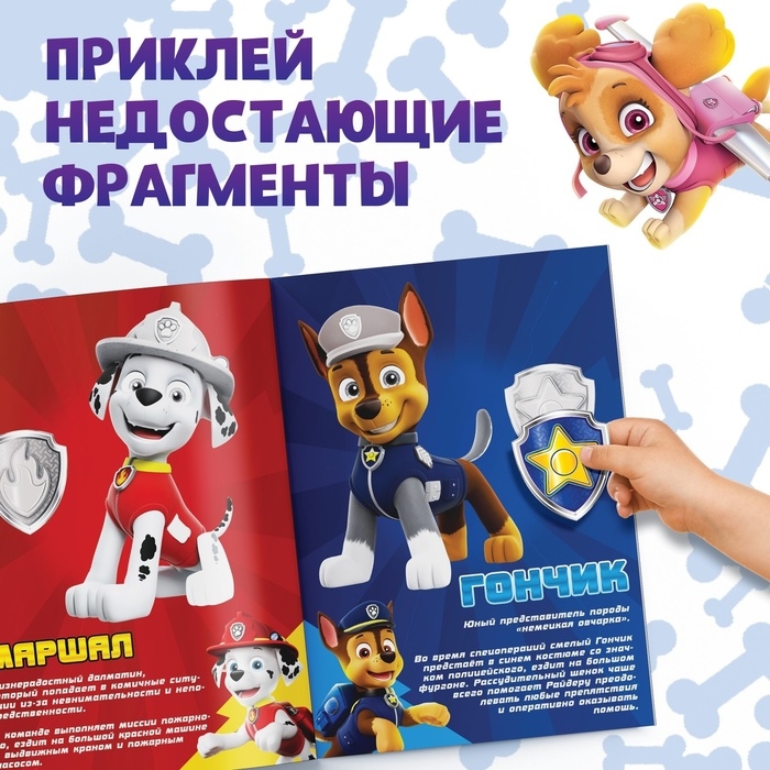 Альбом наклеек «Весёлые наклейки.Собери щенков», А4, 12 стр., Щенячий патруль