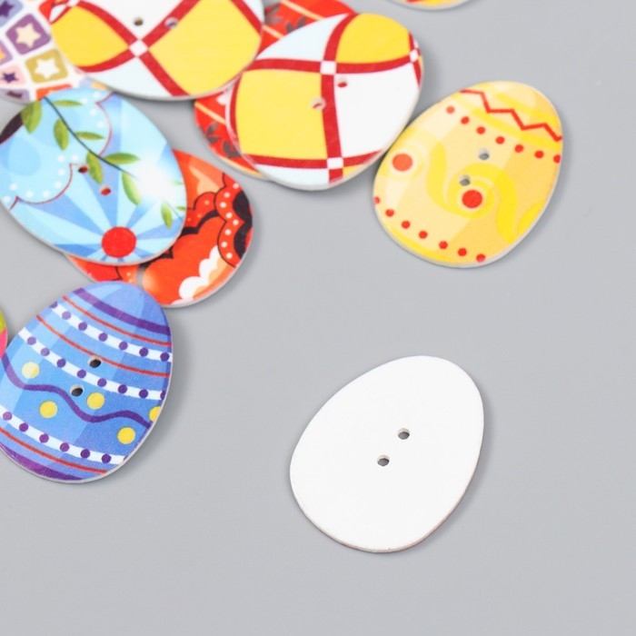 Пуговицы дерево для творчества 2 прокола "Пасхальные яички" набор 16 шт 3,1х2,4 см