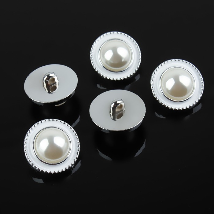 Набор пуговиц на ножке, d = 21,5 мм, 5 шт, цвет жемчужный/серебряный