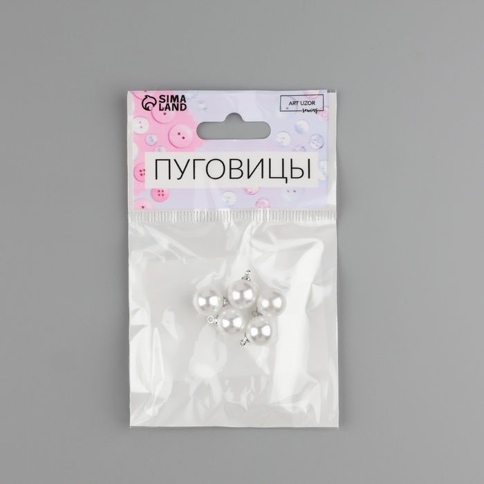Набор пуговиц на ножке, d = 10 мм, 5 шт, цвет перламутровый/серебряный