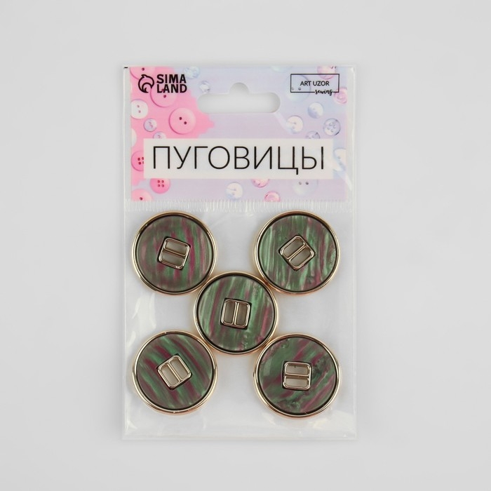 Набор пуговиц, 2 прокола, d = 25 мм, 5 шт, перламутровые, цвет серый/золотой