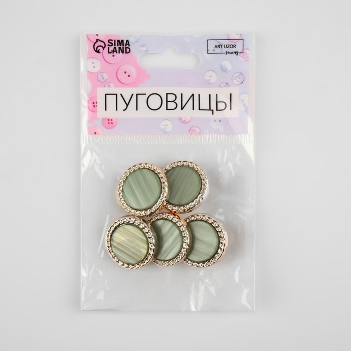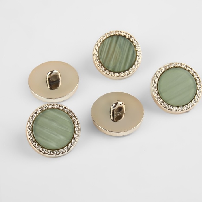 Набор пуговиц на ножке, d = 21,5 мм, 5 шт, перламутровые, цвет зелёный/золотой