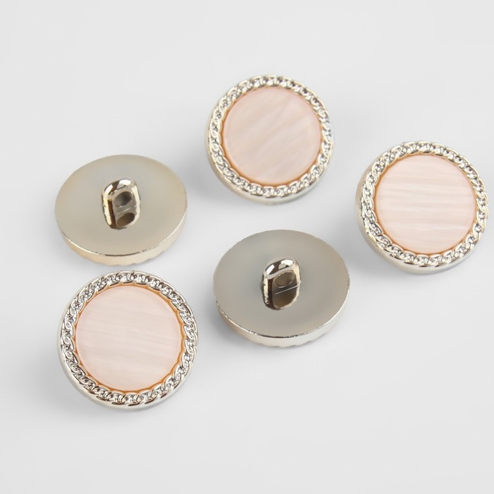 Набор пуговиц на ножке, d = 21,5 мм, 5 шт, перламутровые, цвет персиковый/золотой