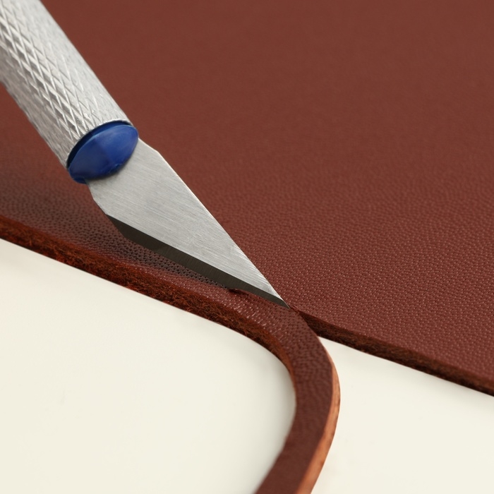 Макетный нож — это специальный инструмент, который используется для точной нарезки и обработки кожаных изделий. Он позволяет создавать детальные вырезы, делать прорези для швов, обрезать лишние края кожи, а также выполнять другие манипуляции при обработке кожаных изделий.