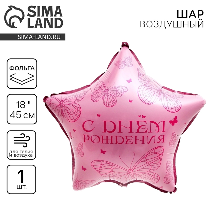 Воздушный шар фольгированный 18" «Бабочка», звезда