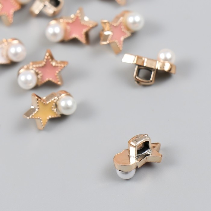 Пуговица пластик для творчества "Звезда с жемчужинкой" набор 10 шт МИКС 1,4х1х0,8 см