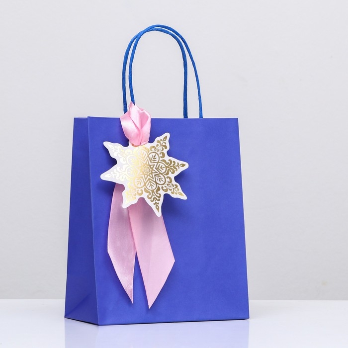 Новый год. Пакет подарочный крафтовый "Золотая снежинка" 18 х 22,3 х 10 см