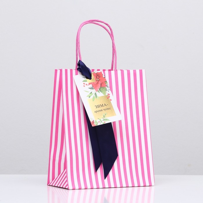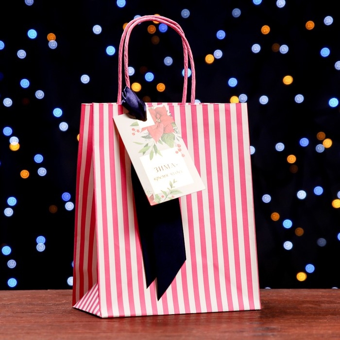 Новый год. Пакет подарочный крафтовый "Зима время чудес" 18 х 22,3 х 10 см