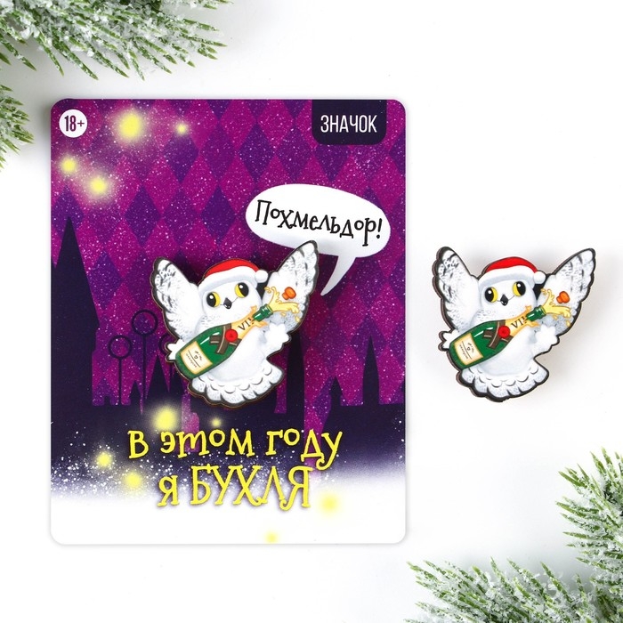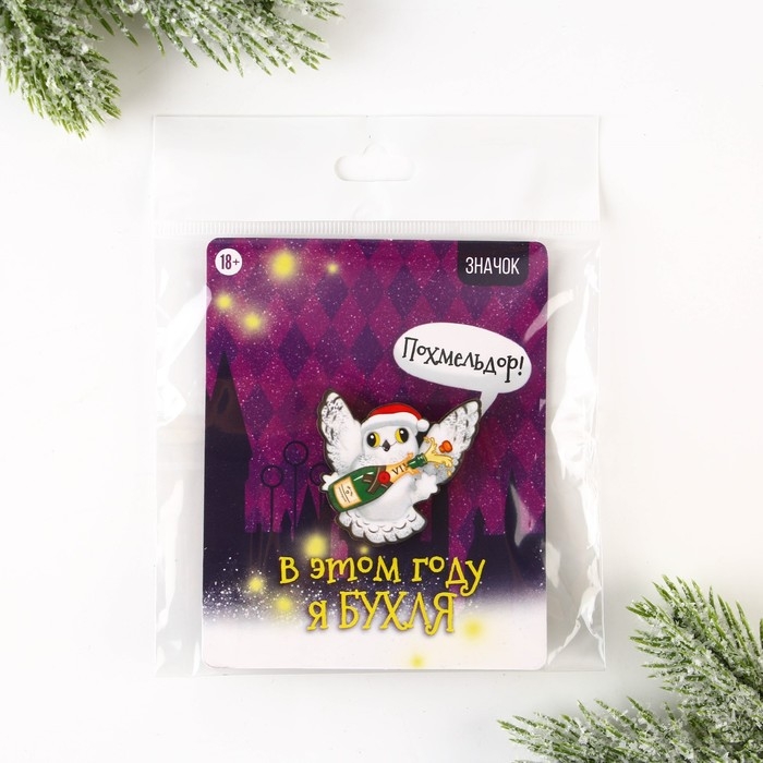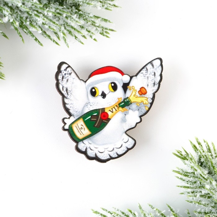 Значок новогодний закатной «Новый год: чирикать», 5,6 см.