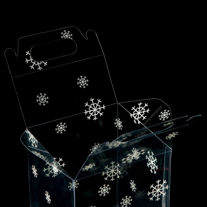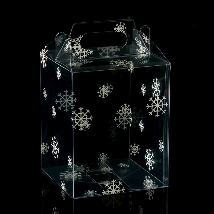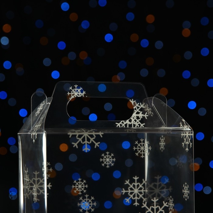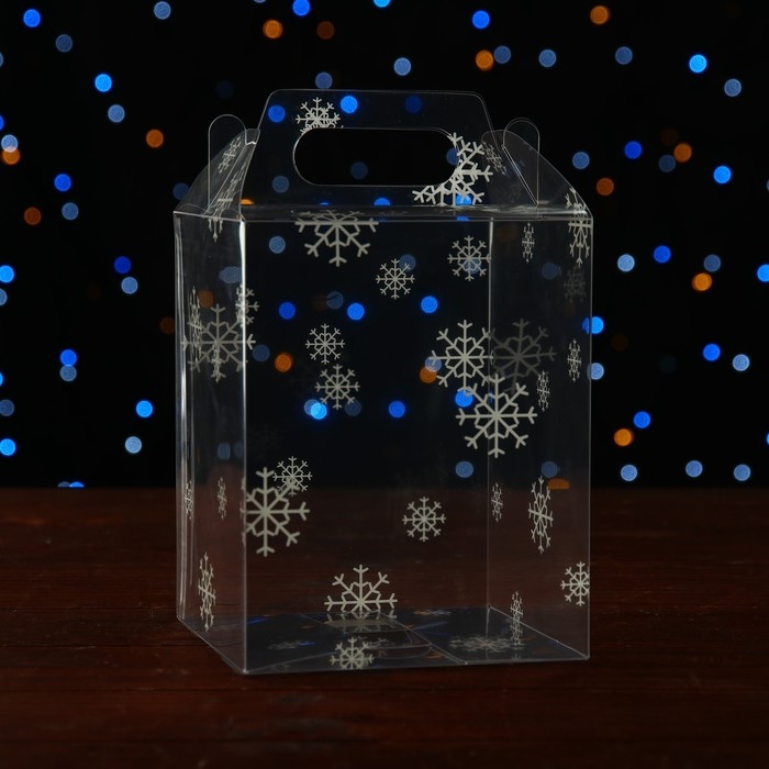 Новый год. Коробка подарочная новогодняя складная ПВХ "Праздничное настроение" 12 x 12 x 15 см.