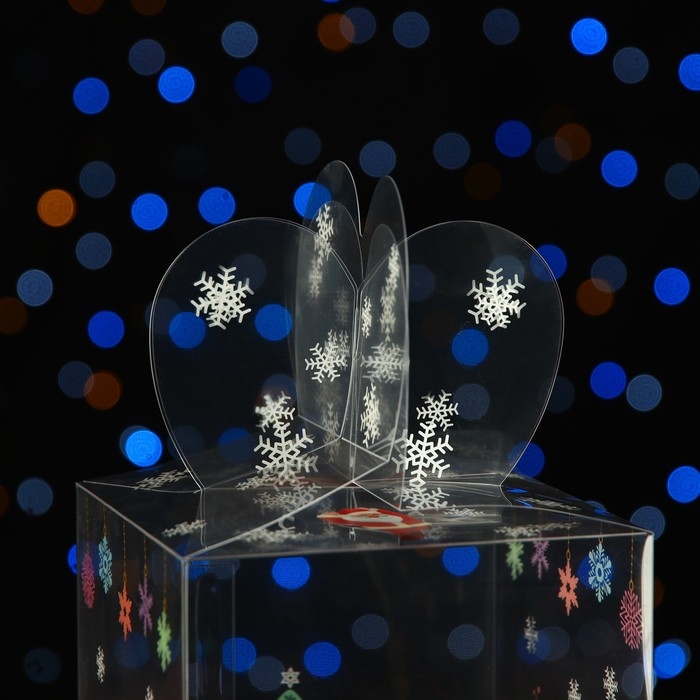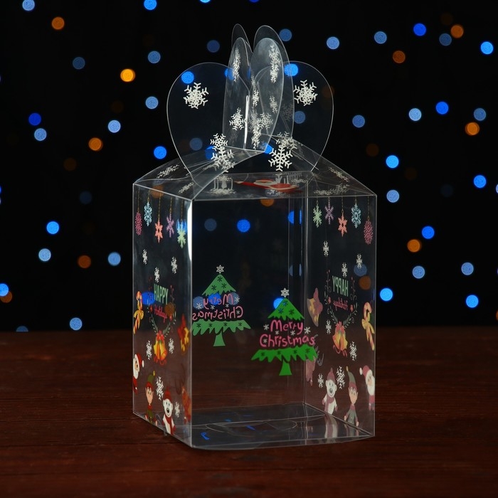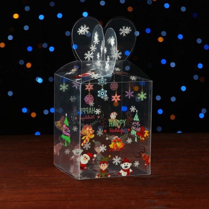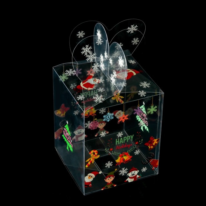 Новый год. Коробка подарочная новогодняя складная ПВХ "Веселый Дед Мороз" 12 x 12 x 15 см.