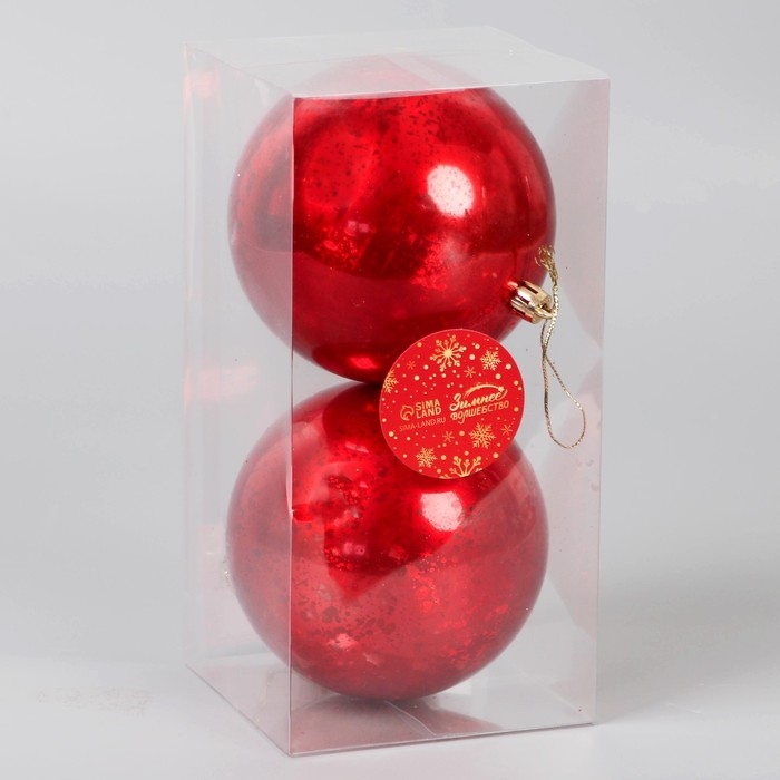 Набор шаров пластик d-10 см, 2 шт "Винтаж" красный