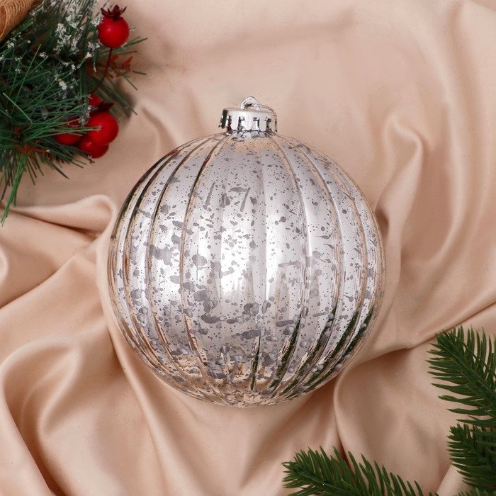 Шар пластик d-11,5 см "Винтаж" полосы, серебро