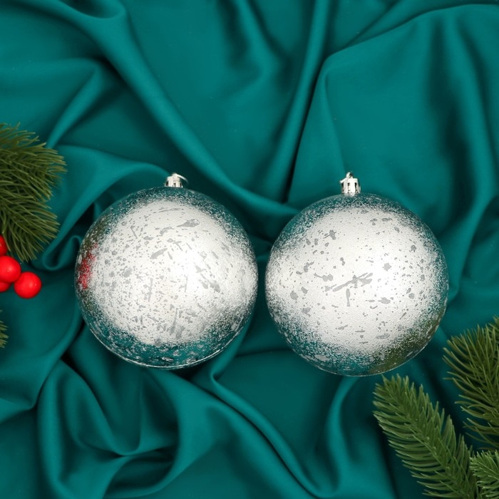 Набор шаров пластик d-10 см, 2 шт "Ретро" серебро