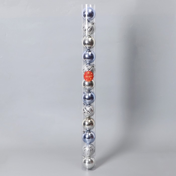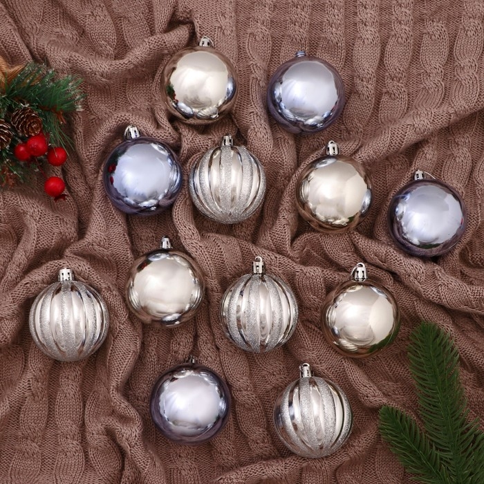 Набор шаров пластик d-6 см, 12 шт "Агнет" полосы, серебристо-голубой