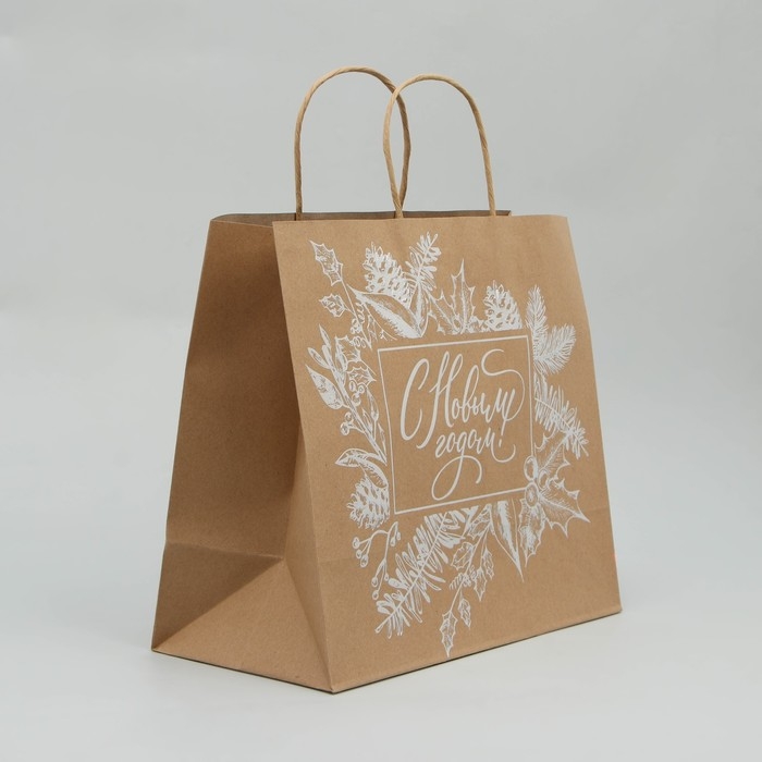 Пакет подарочный новогодний крафтовый «Волшебство», 32 х 28 х 15 см, Новый год