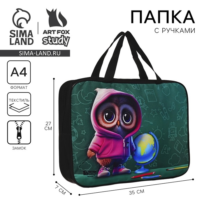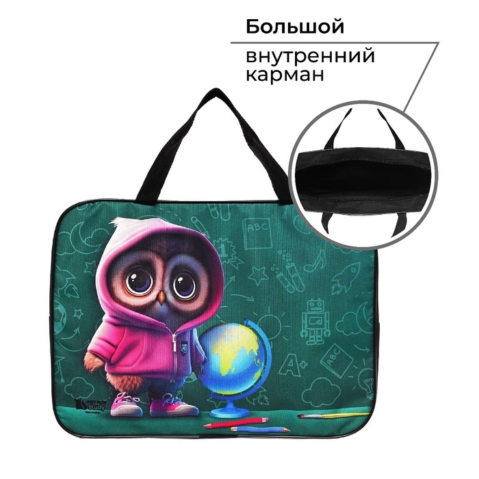 Папка для труда А4 на молнии текстиль 70мм 360 х 260 «1 сентября: Совушка»