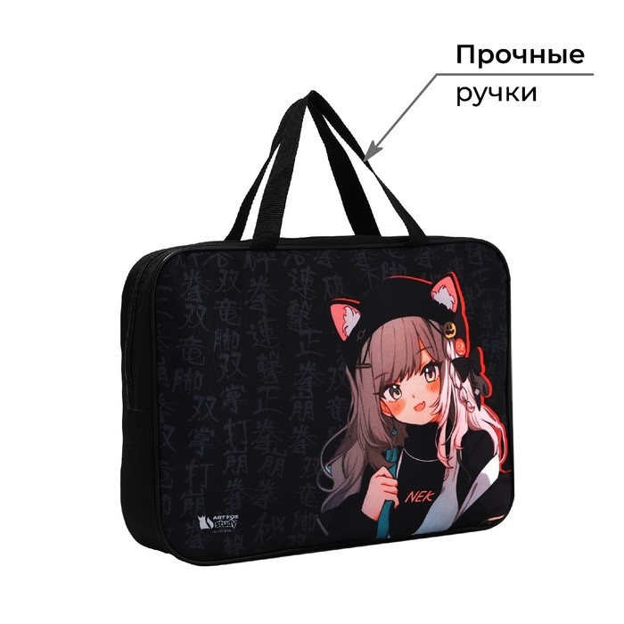 Папка для труда А4 на молнии текстиль 70мм 350 х 270 «1 сентября: Аниме»