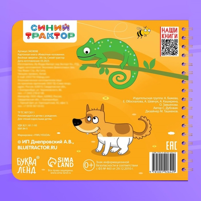 - Книга держится на пружинке, поэтому можно комбинировать самых разных животных, у которых уже придумано причудливое название. Например: лошадь + фламинго = ломинго, бобёр + овечка = бочка и т. п.