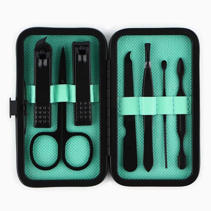 Набор маникюрный, 6 предметов, в футляре, цвет чёрный