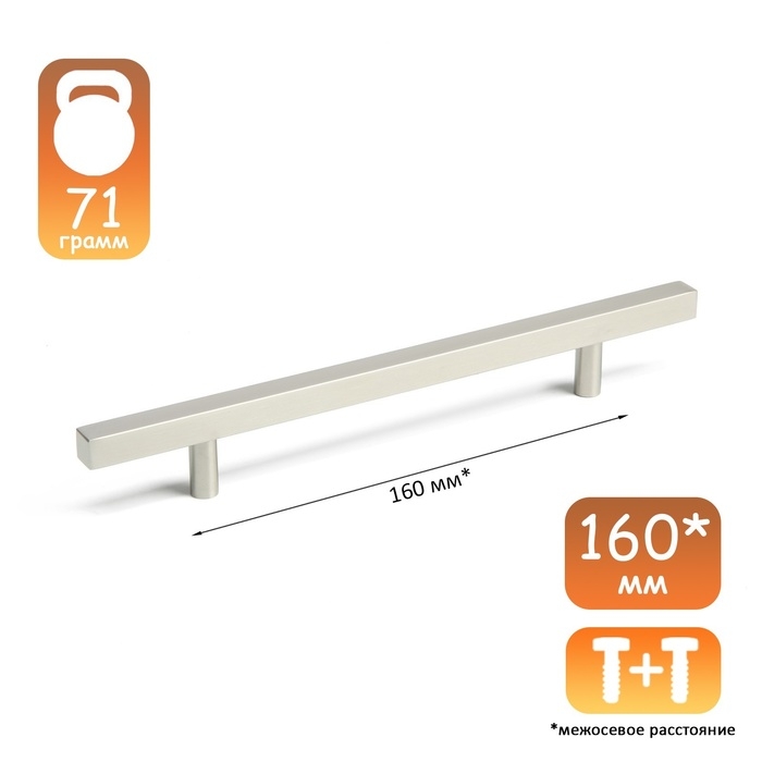 Ручка-рейлинг квадрат CAPPIO, м/о 160, длина 250 мм, нерж. сталь