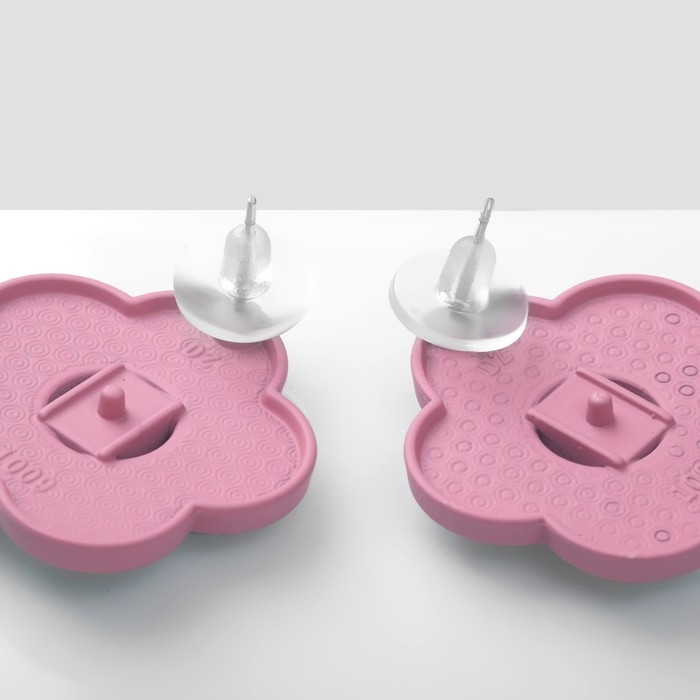 Серьги пластик «Вкусности» динозаврик и цветочек, цвет сине-розовый